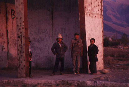 Während Anatoli den Reifen wechselt, tauchen die vier Jungs auf.